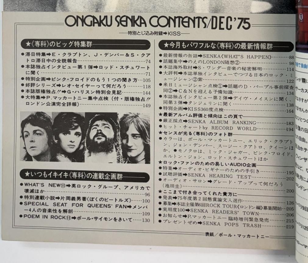 音楽専科 1975年12月 ポールマッカートニー / KISS キッス大型ポスター付き ピンクフロイド クイーン ディープパープル