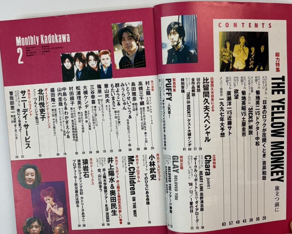 カドカワ Vol.15-2 1997年2月 イエローモンキー 50頁 / Chara with 忌野清志郎 GLAY 森高千里 草野マサムネ Mr.Children