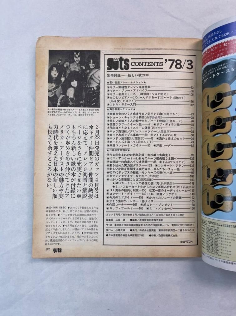 ガッツ guts 1978年3月 さだまさし / NSP ピンナップポスター付 QUEEN 浜田省吾 舘ひろし 風 CHAR 吉田拓郎 世良公則