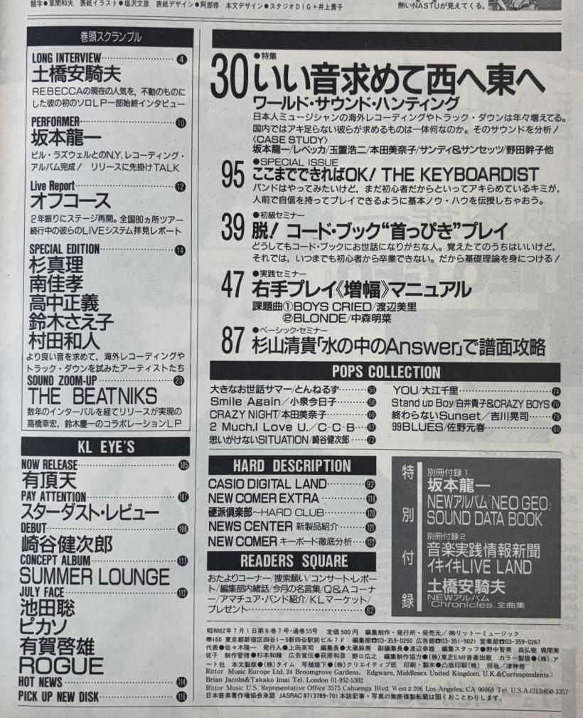 キーボード・ランド 55 坂本龍一 オフコース 高中正義 有頂天 スターダスト・レビュー