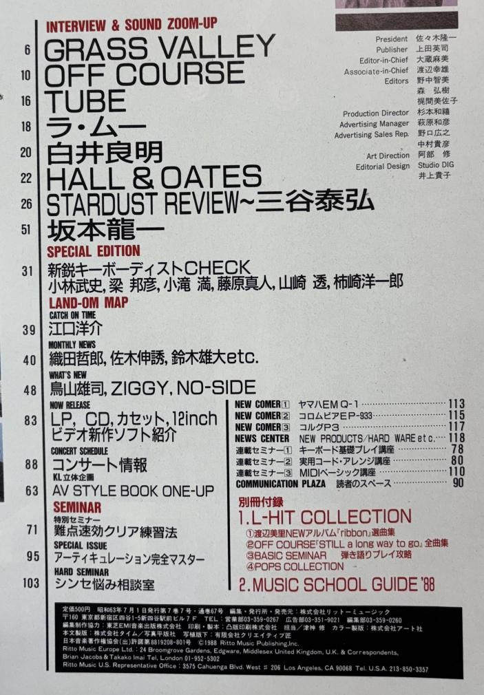 キーボード・ランド 67 坂本龍一 グラスバレー オフコース TUBE スターダストレビュー