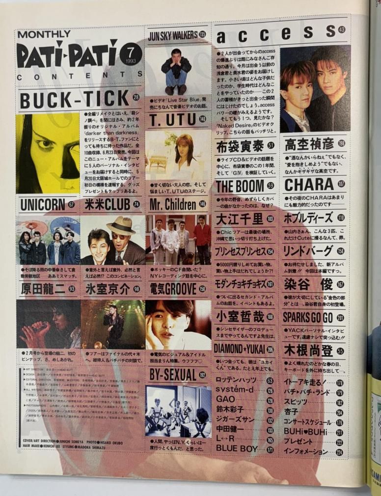 パチパチ第9巻第8号 1993年7月 福山雅治 / BUCK-TICK 氷室京介 スピッツ Mr.Children 宇都宮隆 布袋寅泰