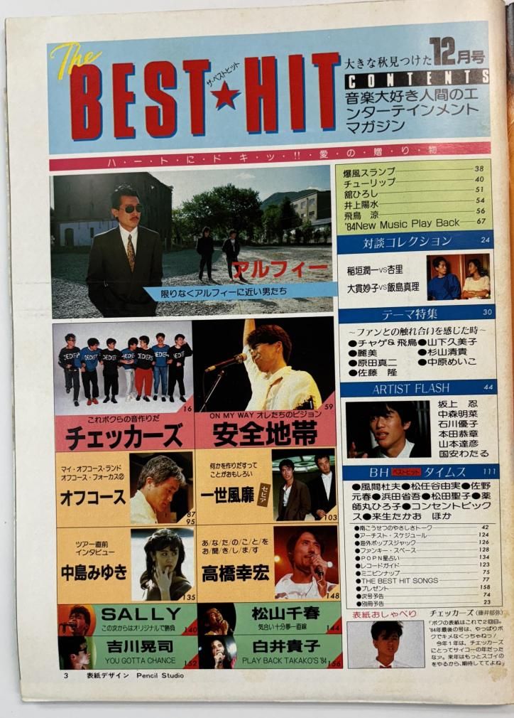 BEST HIT 1984年12月 チェッカーズ/ アルフィー オフコース 安全地帯 坂本龍一 杉山清貴&1986オメガトライブ 中島みゆき