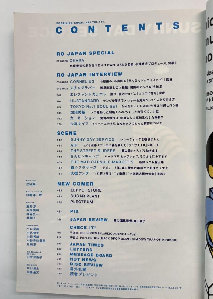 ロッキングオンジャパン 119 1996年9月 CHARA 28頁 / コーネリアス エレファントカシマシ10頁 ハイスタンダード AIR