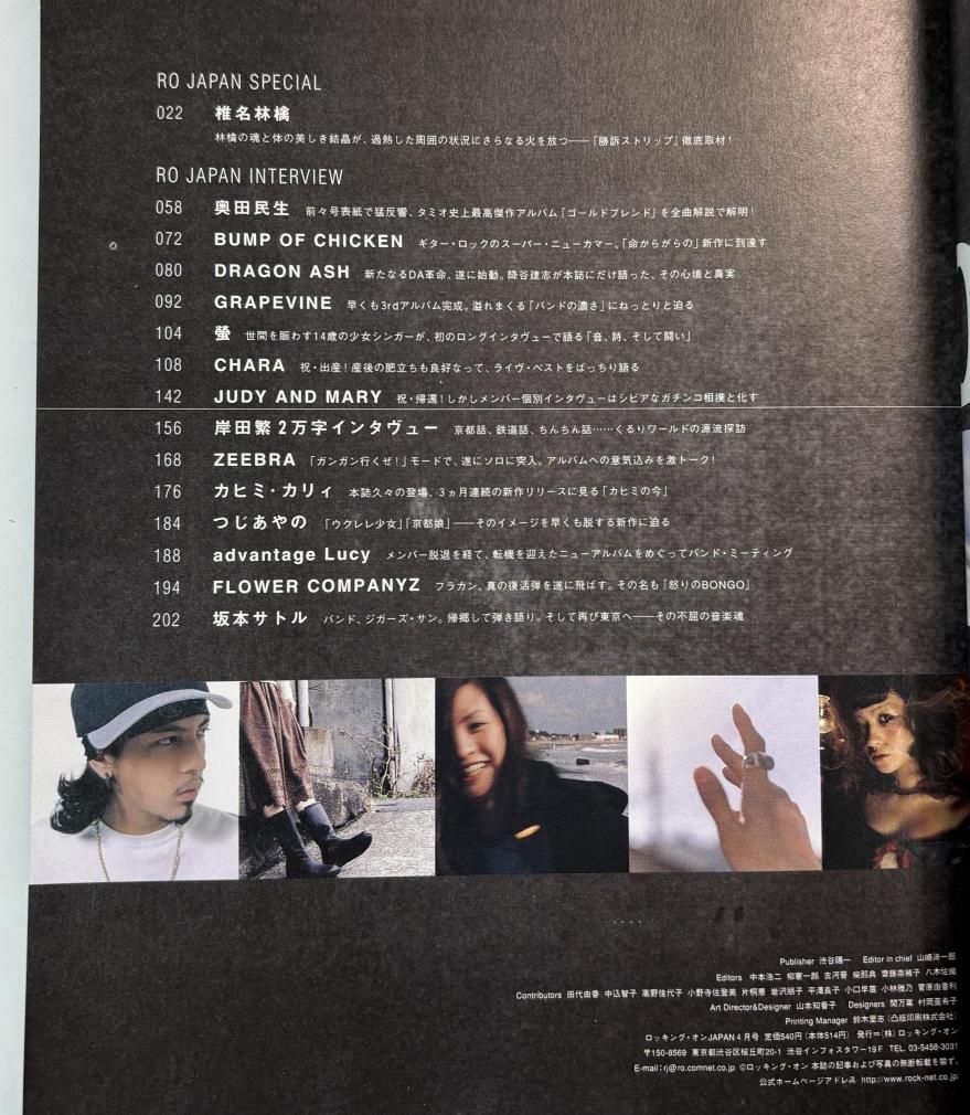 椎名林檎 特集36頁 / くるり 岸田繁 2万字インタビュー BUMP OF CHICKEN バンプオブチキン8頁 奥田民生 JUDY AND MARY ジュディアンドマリー ドラゴンアッシュ GRAPEVINE