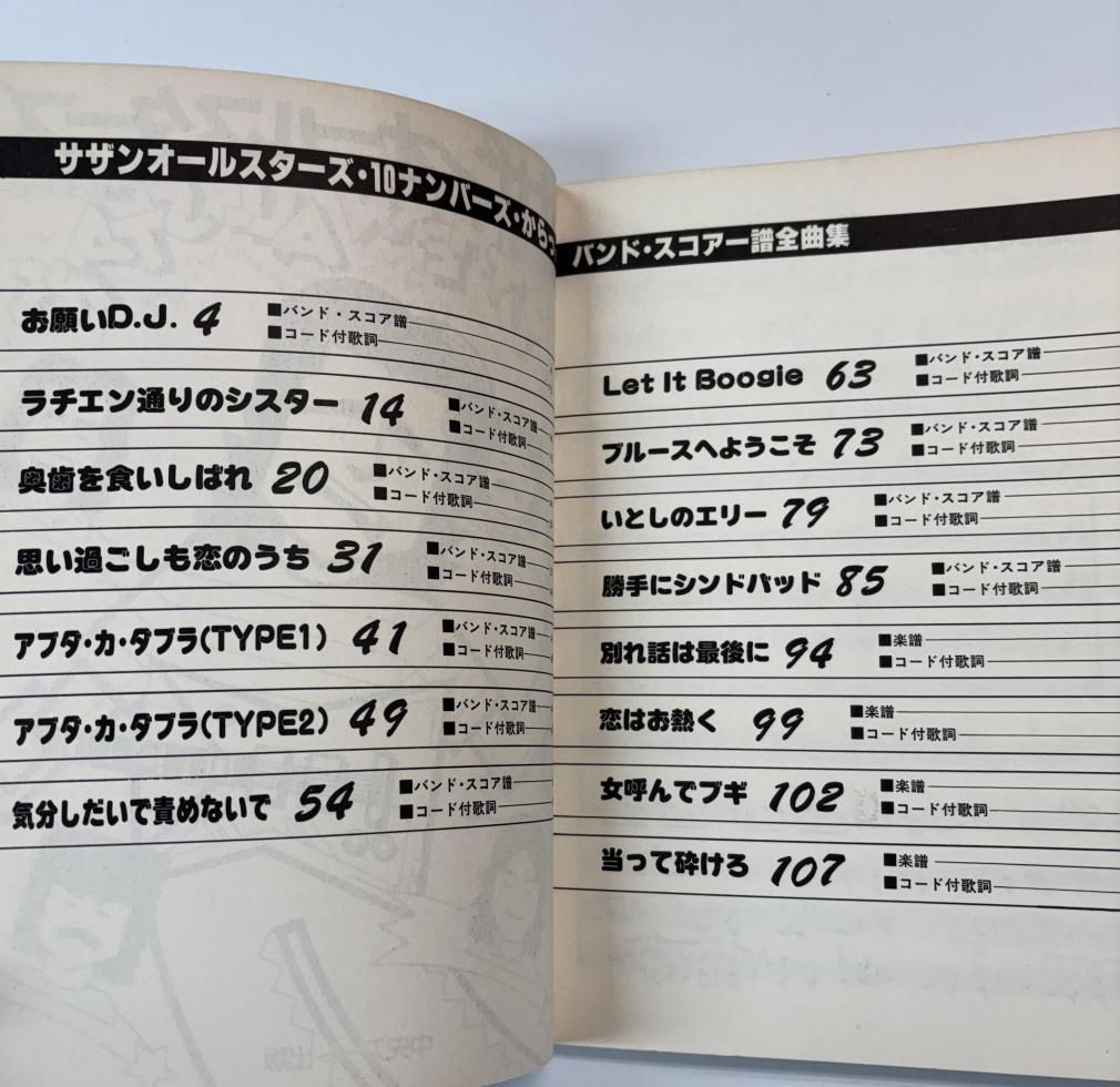 サザンオールスターズ バンドスコア ライブベスト全曲集 完全レコードコピー 10曲 「10ナンバーズからっと」LP全曲 楽譜