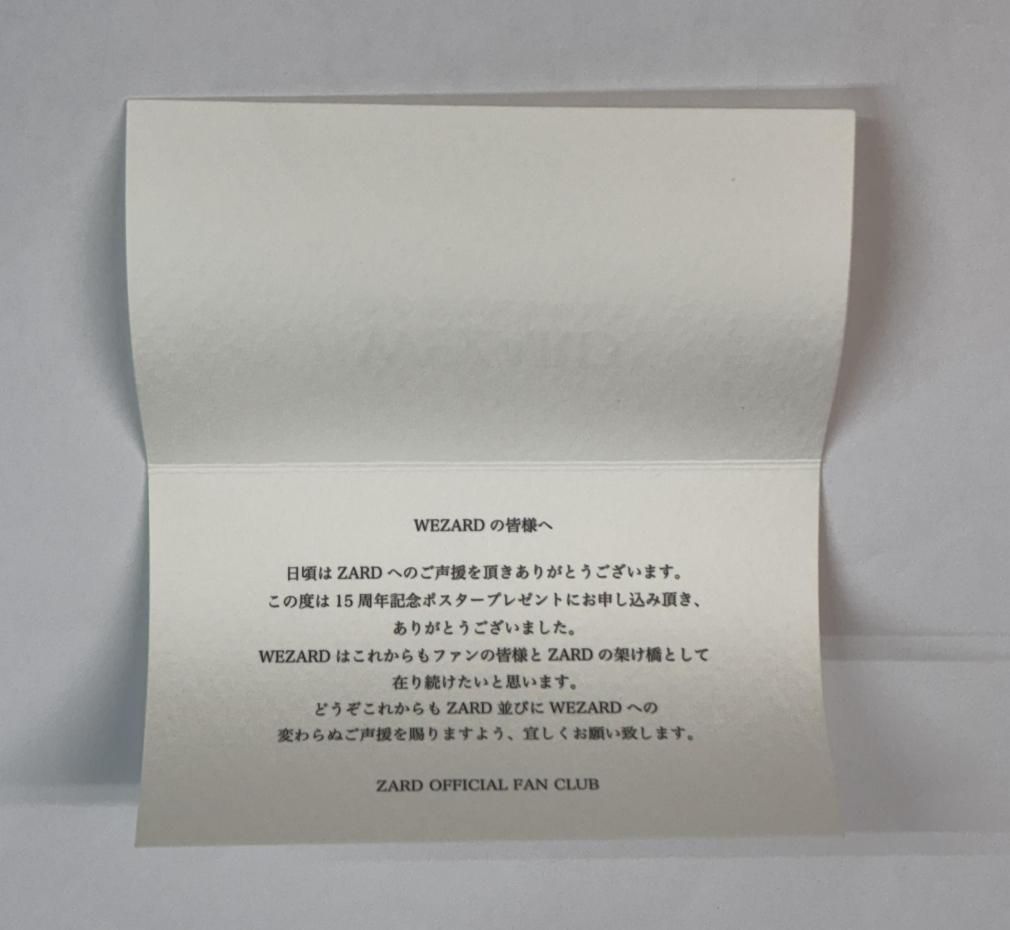 ZARD WEZARD ファンクラブ限定 15周年ポスター メッセージカード、筒付き 未使用 B2サイズ