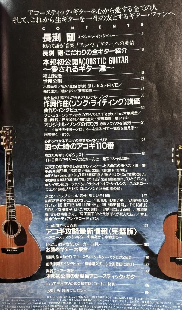 ギグス増刊号 GiGS 少年ギター アコースティック '94 表紙&特集:長渕剛 ロング・インタビュー、生ギター紹介、スコア4曲