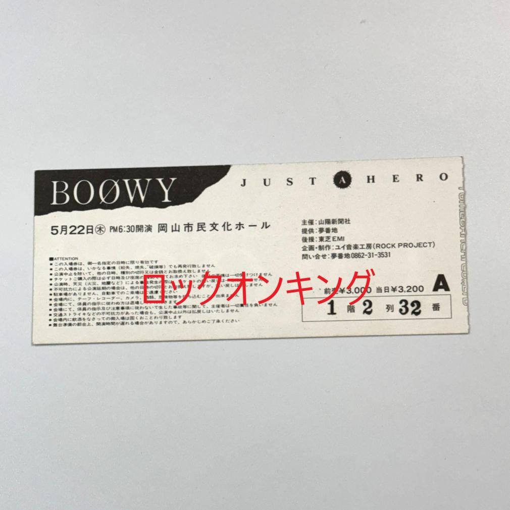 BOOWY 半券チケット JUST A HERO 1986年ツアー 岡山 デザインチケット