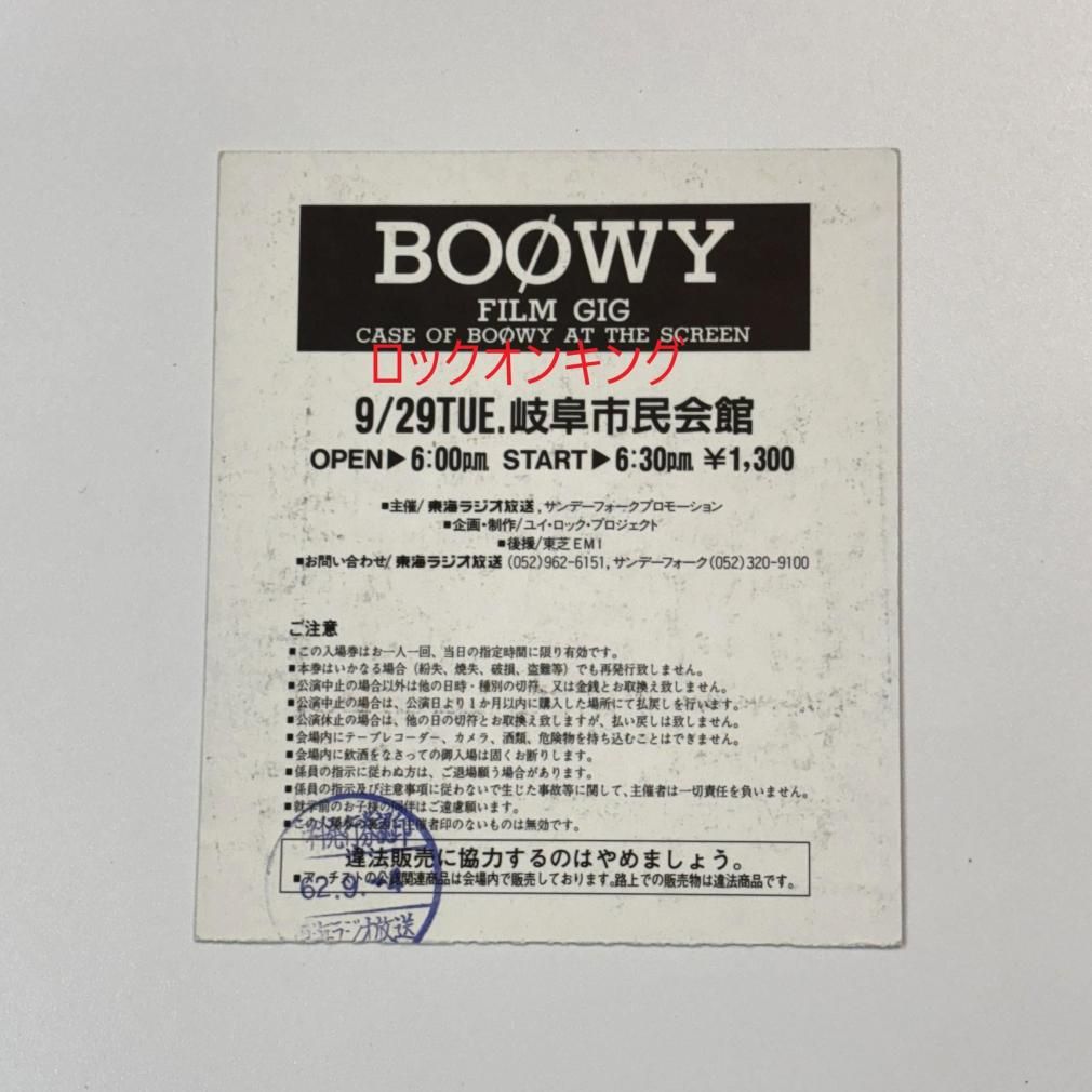 BOOWY 半券チケット 1987年9月29日 FILM GIGS CASE OF BOOWY AT THE SCREEN 岐阜 デザインチケット
