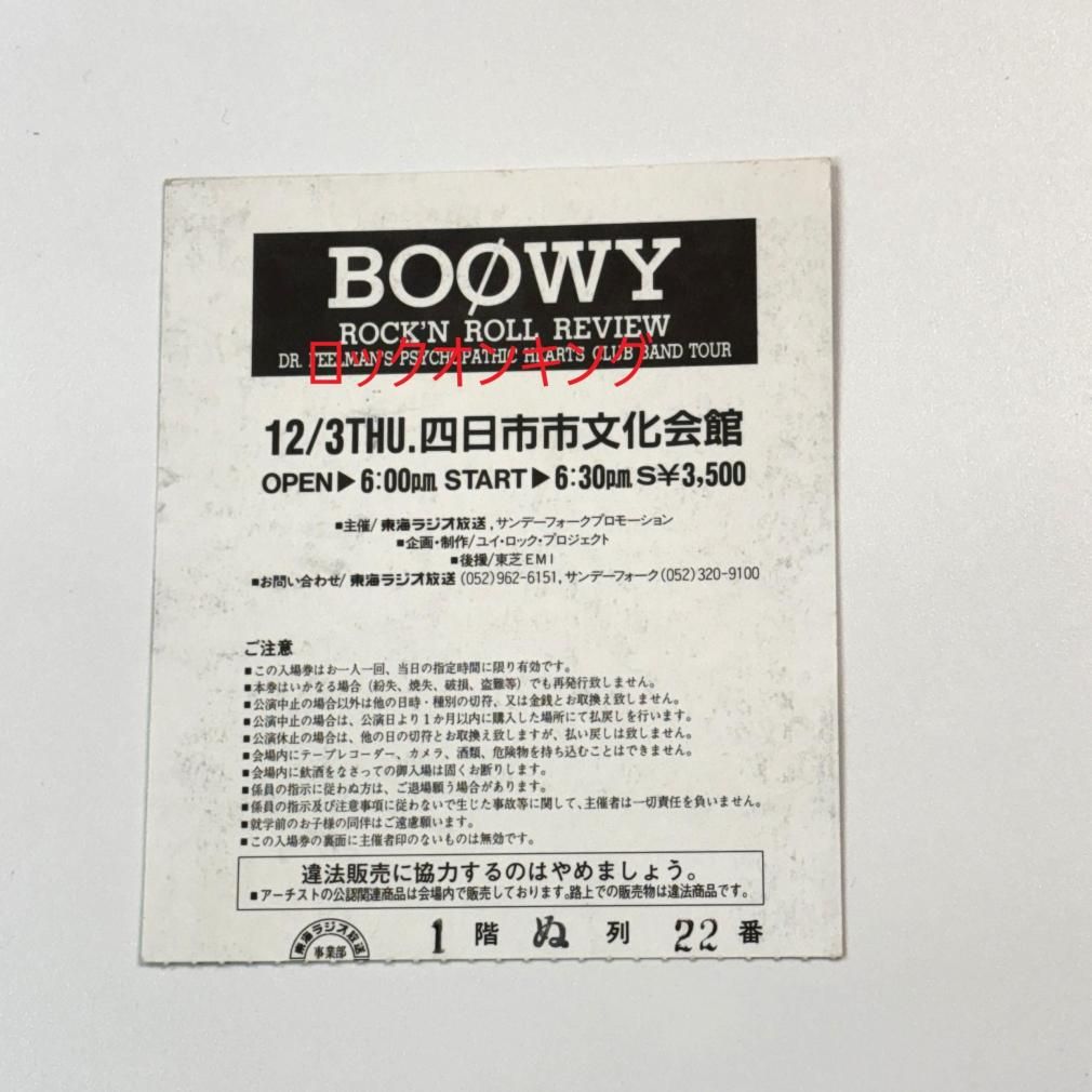 BOOWY 半券チケット 1987年12月3日 ROCK'N'ROLL REVIEW 四日市 デザインチケット