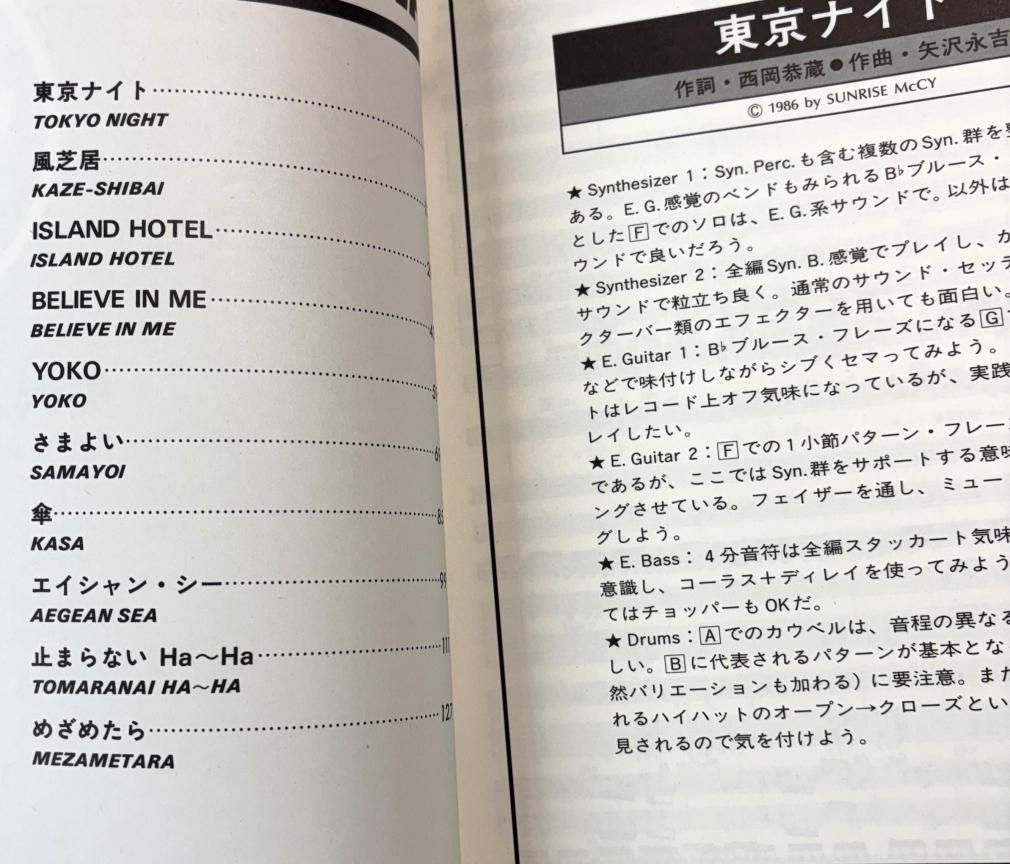 矢沢永吉 バンドスコア 東京ナイト ギター&ベースタブ譜付 ショインミュージック 楽譜