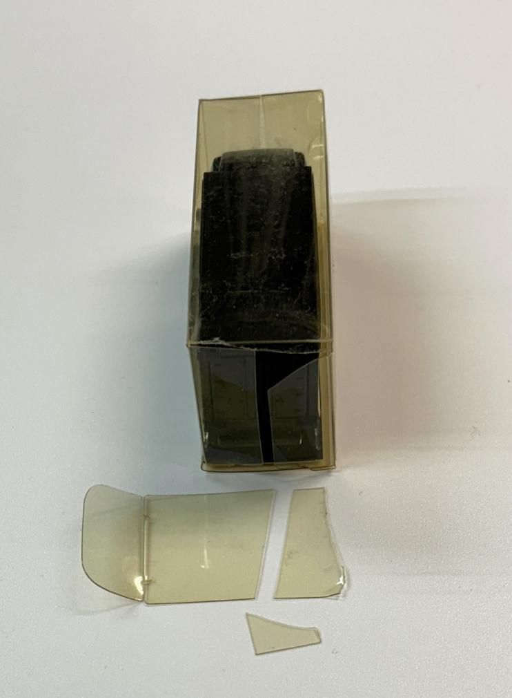 経年並みの状態です。ケースふた2箇所割れ7有。