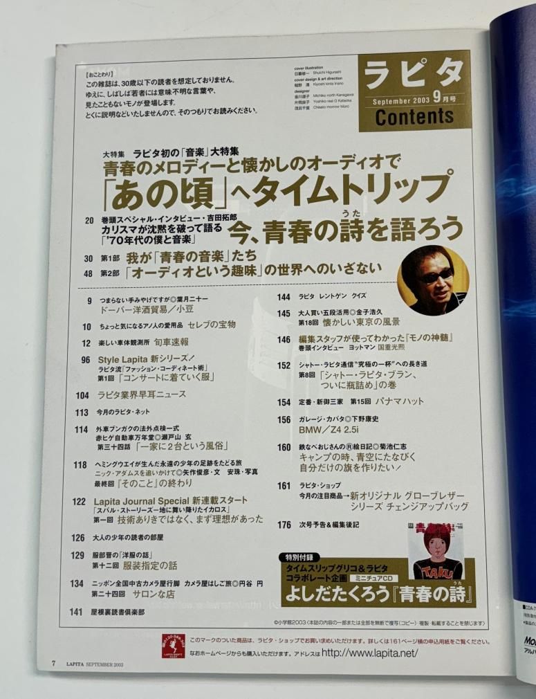吉田拓郎 雑誌「ラピタ」2003年 月刊「吉田拓郎」  「青春の詩」CD付き(未開封)