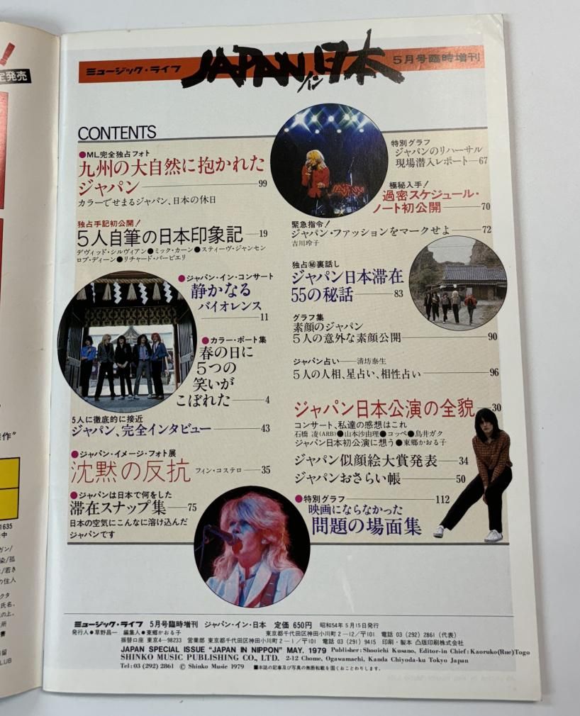 ジャパン 写真集 JAPANイン日本 ポスター付 ミュージックライフ増刊 1979年