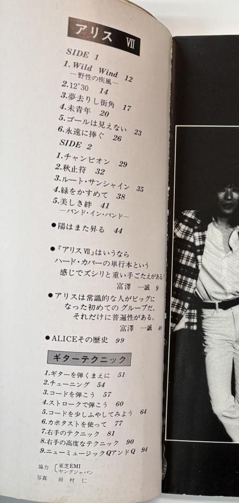アリス 写真・楽譜集 アリスとギターテクニック PART5 アルバム「アリス 7」 共同音楽出版社