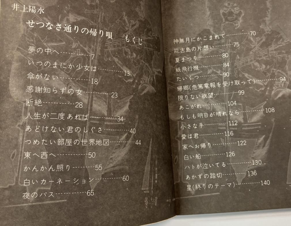 井上陽水 せつなさ通りの帰り唄 写真・解説・楽譜 ギター伴奏 ドレミ楽譜出版社