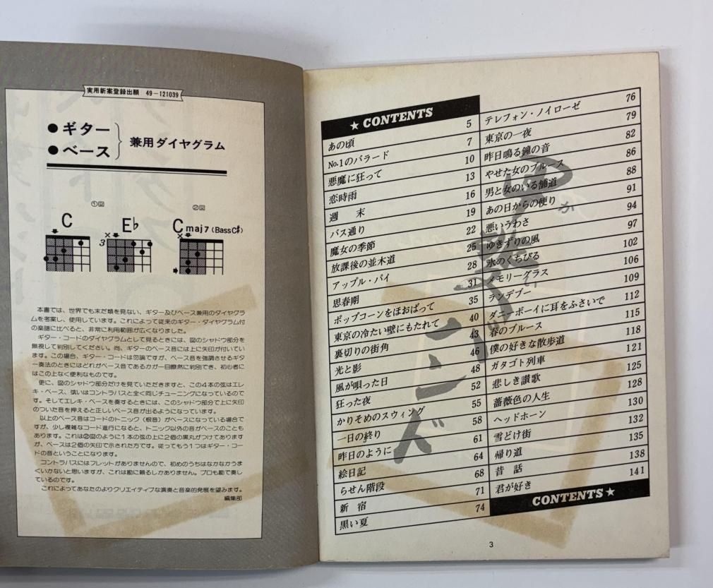 45曲 ベース・ノート入りギター・コードダイヤグラム コード譜、メロ譜 写真有