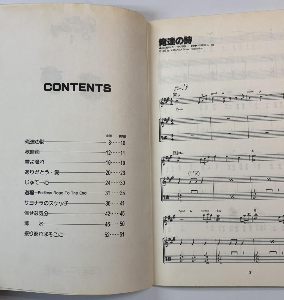 雅夢  ギタースコア ギター譜 ギターサンデー1 雅夢 LP「風花」 タブ譜付 中央アート出版