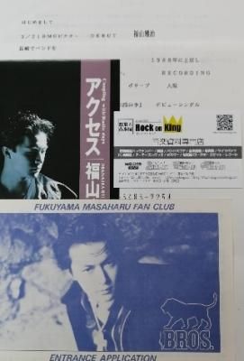 デビュー当時の資料として、FIRST LIVE(5/4 Egg Man)の無料招待の告知、「LIVE アクセス」(福山さんのメッセージ入り)、アンケート、「アクセス」告知、ファンクラブ「BROS.」入会申込書もセットです。