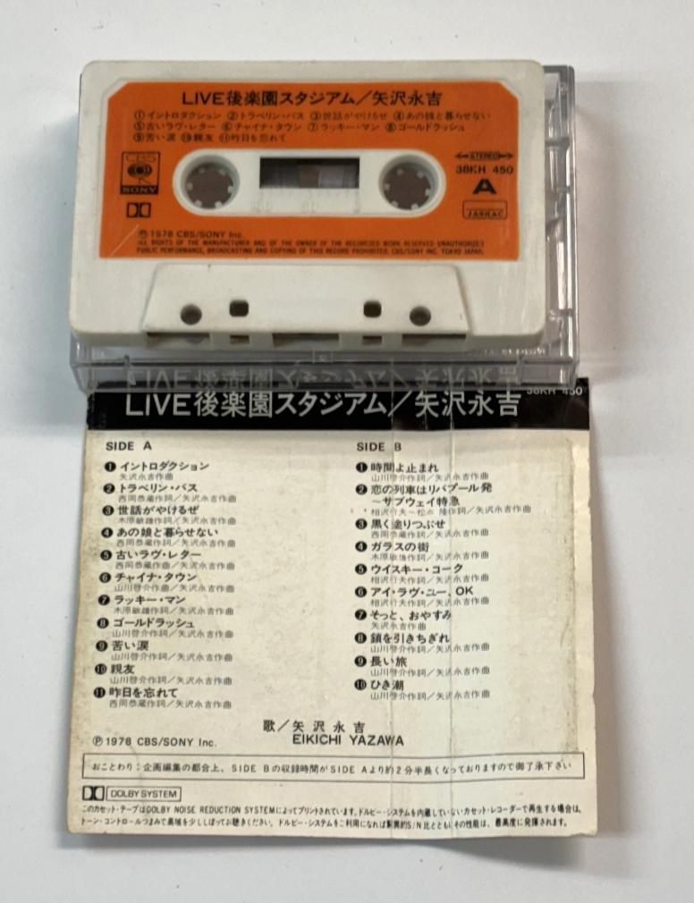 矢沢永吉 カセットテープ LIVE後楽園スタジアム 歌詞カード欠