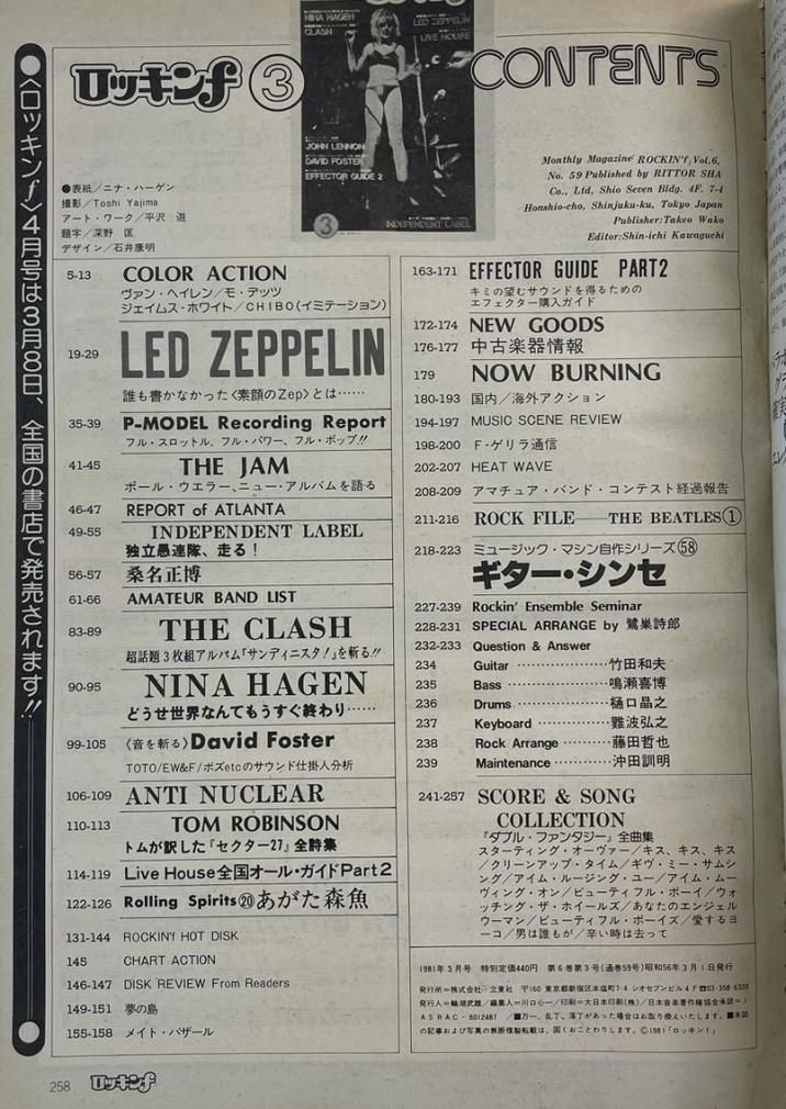 ロッキンf Rockin'f 59 1981年3月 ニナハーゲン / レッドツェッペリン P-MODEL 5頁 クラッシュ ヴァンヘイレン THE JAM