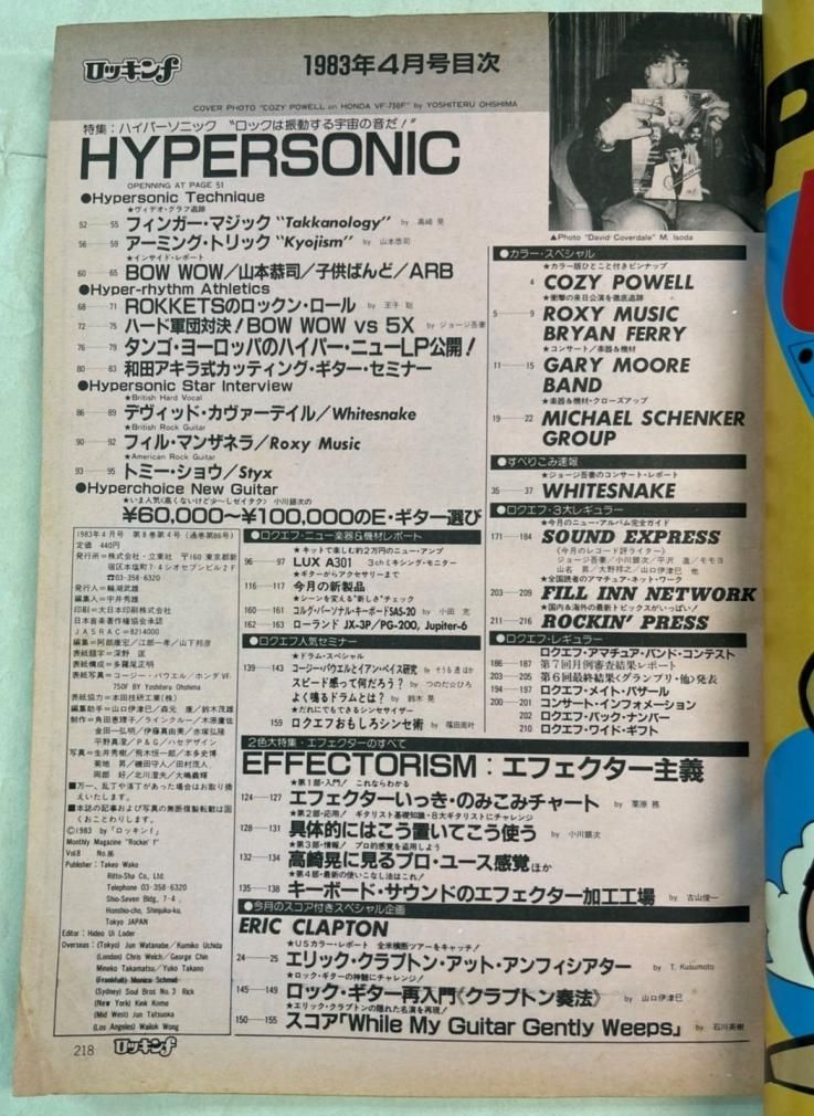 特集 ハイパーソニック シーナー&ロケットBOW WOW 山本恭司 子供ばんど ARB ゲイリー・ムーア Bryan Ferry マイケル・シェンカー スコア エリック・クラプトン