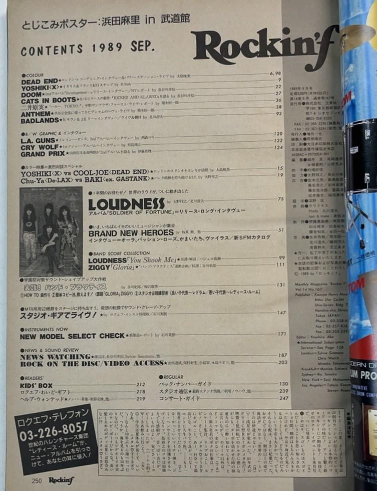 ロッキンf Rockin'f 167 1989年9月 ラウドネス / YOSHIKI(X エックス)ZIGGY 浜田麻里(ピンナップ付)