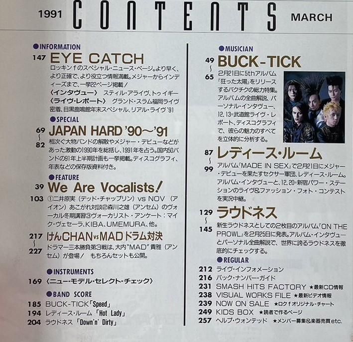 ロッキンf Rockin'f 185 1991年3月 BUCK-TICK / レディース・ルーム Zi:Kill ストロベリーフィールズ レコード付