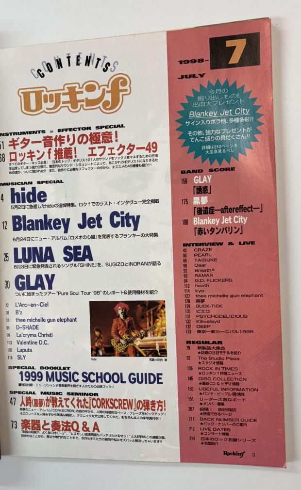 ロッキンf Rockin'f 272 1998年7月 ブランキージェットシティ / 追悼 hide ラストインタビュー GLAY LUNA SEA ラルクアンシエル SLY