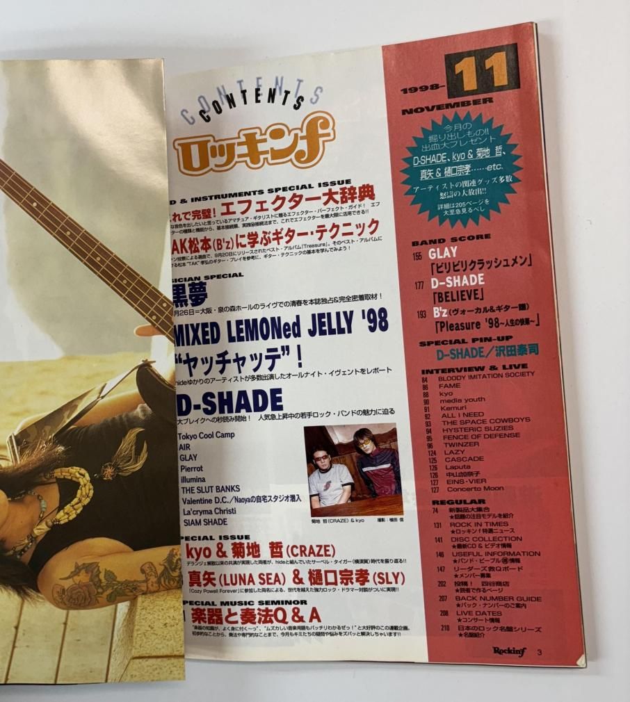 ロッキンfRockin'f 276 1998年11月 D-SHADE / エフェクター大辞典 kyo vs 菊地哲(CRAZE) 沢田泰司ピンナップ