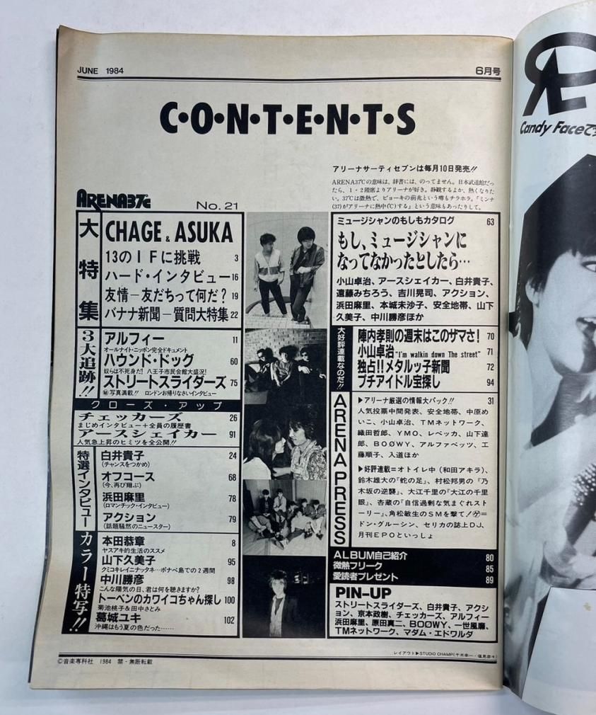 アリーナ37℃ 21 1984年6月 チャゲ&飛鳥/ BOOWY アルフィー チェッカーズ ハウンドドッグ ストリートスライダーズ アースシェイカー