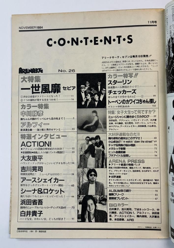 アリーナ37℃ 26 1984年11月 一世風靡セピア/中川勝彦 アルフィー 浜田省吾 TM NETWORK パーソンズ シーナ&ロケット