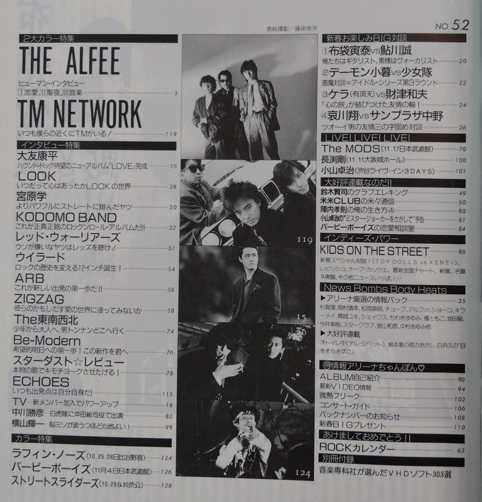 アリーナ37℃ 52 1987年1月 2大特集 アルフィー / TM NETWORK 布袋寅vs鮎川誠 ストリートスライダーズ BOOWY 浜田省吾