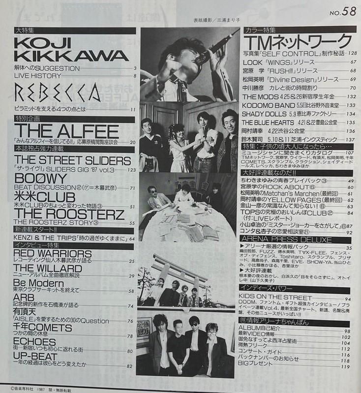 アリーナ37℃ 58 1987年7月 吉川晃司/ レベッカ アルフィー TMネットワーク ストリートスライダーズ BOOWY ブルーハーツ