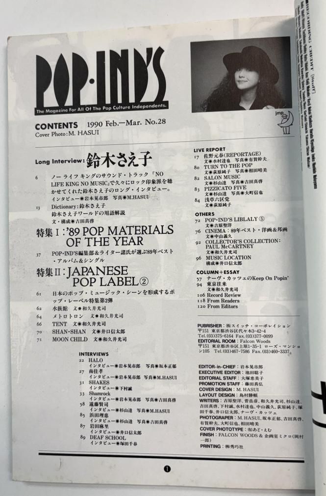 POP IND'S ポップ・インズ 28号 鈴木さえ子/佐野元春 南佳孝 遠藤賢司 サロン・ミュージック ピチカート・ファイヴ