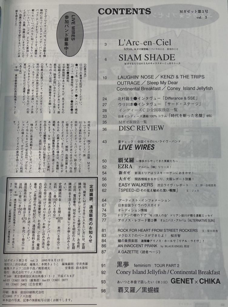 エムガゼット 3号 1995年8月 L'Arc-en-Ciel ラルクアンシエル(TETSU)/ SIAM SHADE ラフィンノーズ 黒夢