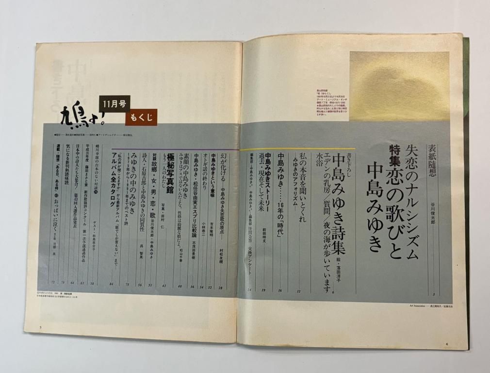 中島みゆき 雑誌 鳩よ! 表紙:中島みゆき 特集80頁以上 対談:中島みゆき×谷川俊太郎 松任谷由実 1991年11月