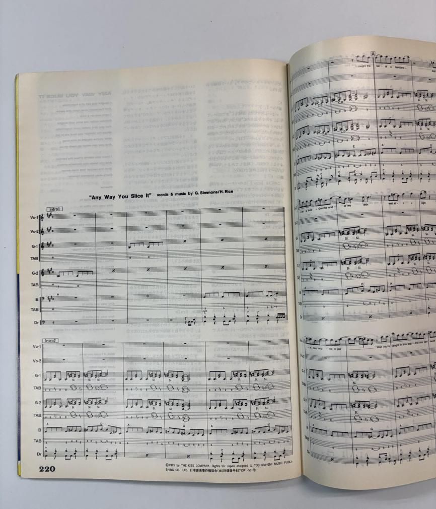 RATT / 布袋寅泰 TM NETWORK 平沢進 1頁 戸川純 KISS レベッカ ラウドネス バービーボーイズ ゼルダ CURE ムーンライダーズ ロバート・スミス(キュアー) ゲイリー・ムーア バンドスコア:KISS「Any Way You Slice It」