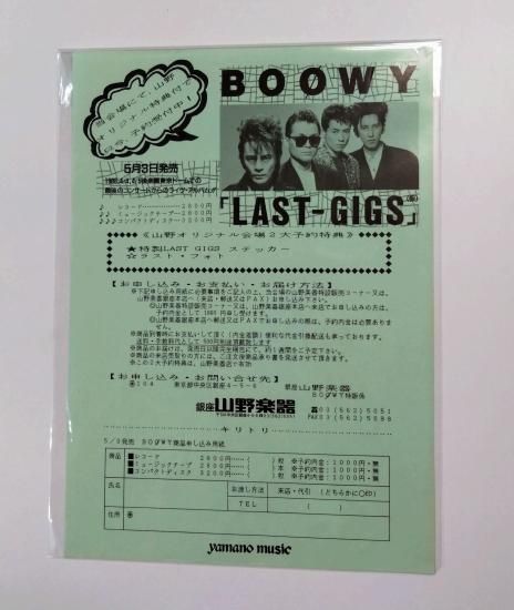 BOOWY アルバム LAST GIGS 銀座山野楽器の予約申込み用紙(写真有り)