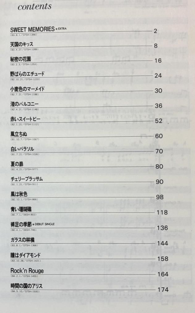 松田聖子 バンドスコア 全シングルA面集 「裸足の季節」から「時間の国のアリス」まで18曲