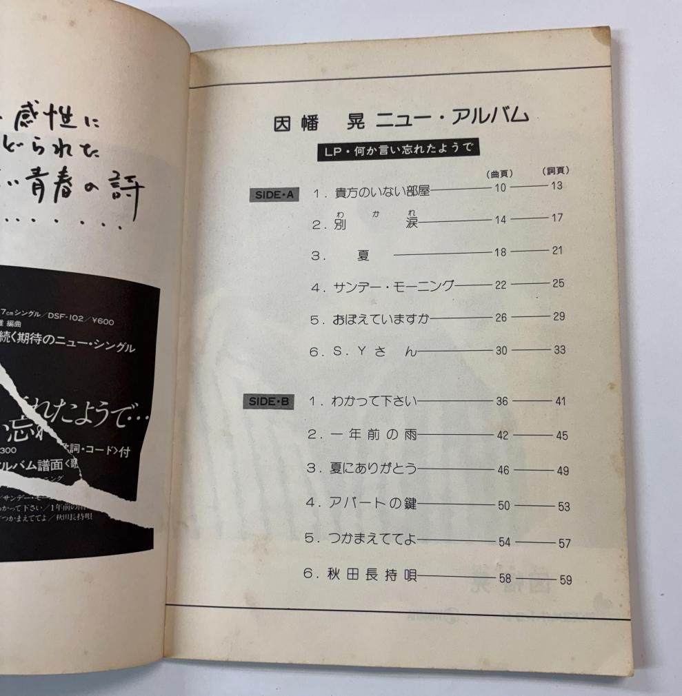 因幡 晃 ギタースコア ギター弾き語り 因幡晃 何か言い忘れたようで・・・ 国際楽譜出版