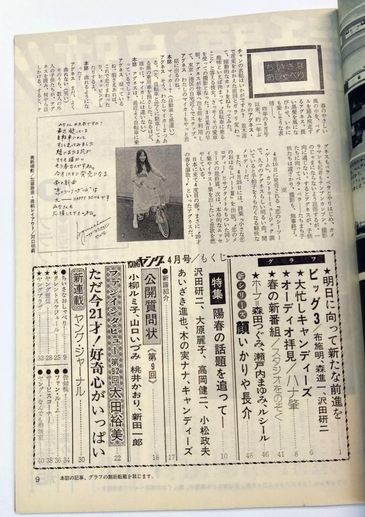 YOUNG ヤング 渡辺プロ 1976/4 アグネスチャン / 沢田研二 布施明 森進一 大原麗子 キャンディーズ 小柳ルミ子