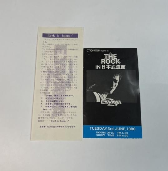 矢沢永吉 1980年 チケット半券 THE ROCK IN 日本武道館 1980.6.3 写真入り EXCITING CLUBからのコンサート注意事項の用紙付き