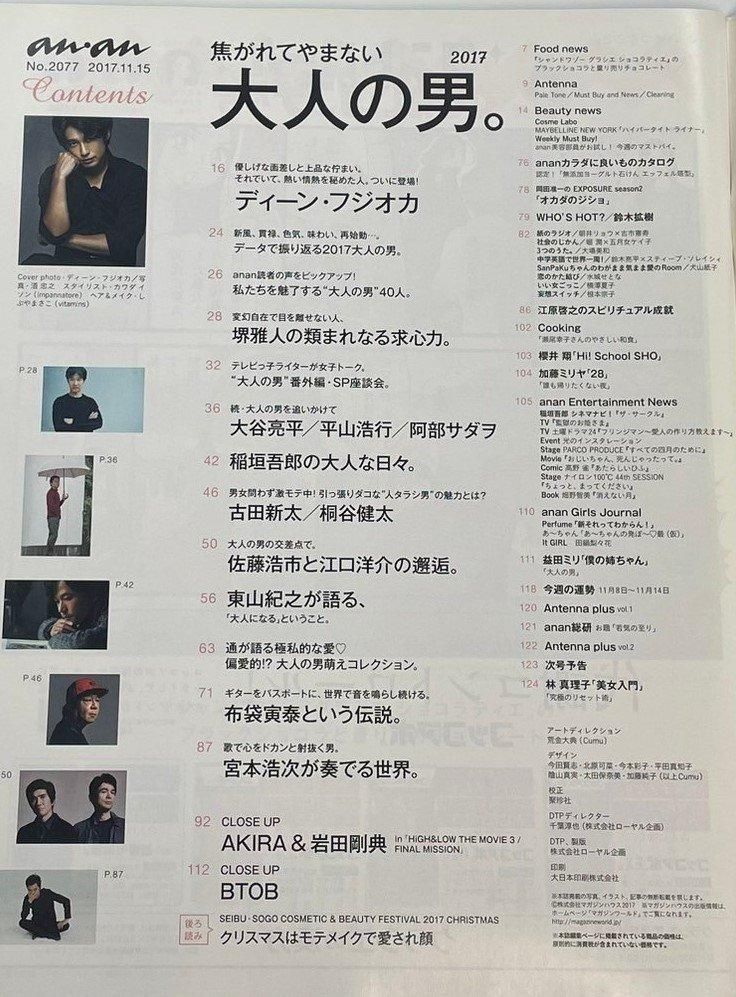 anan アンアン 2017.11.15 ディーン・フジオカ / 宮本浩次(エレファントカシマシ) 布袋寅泰 稲垣吾郎 岩田剛典