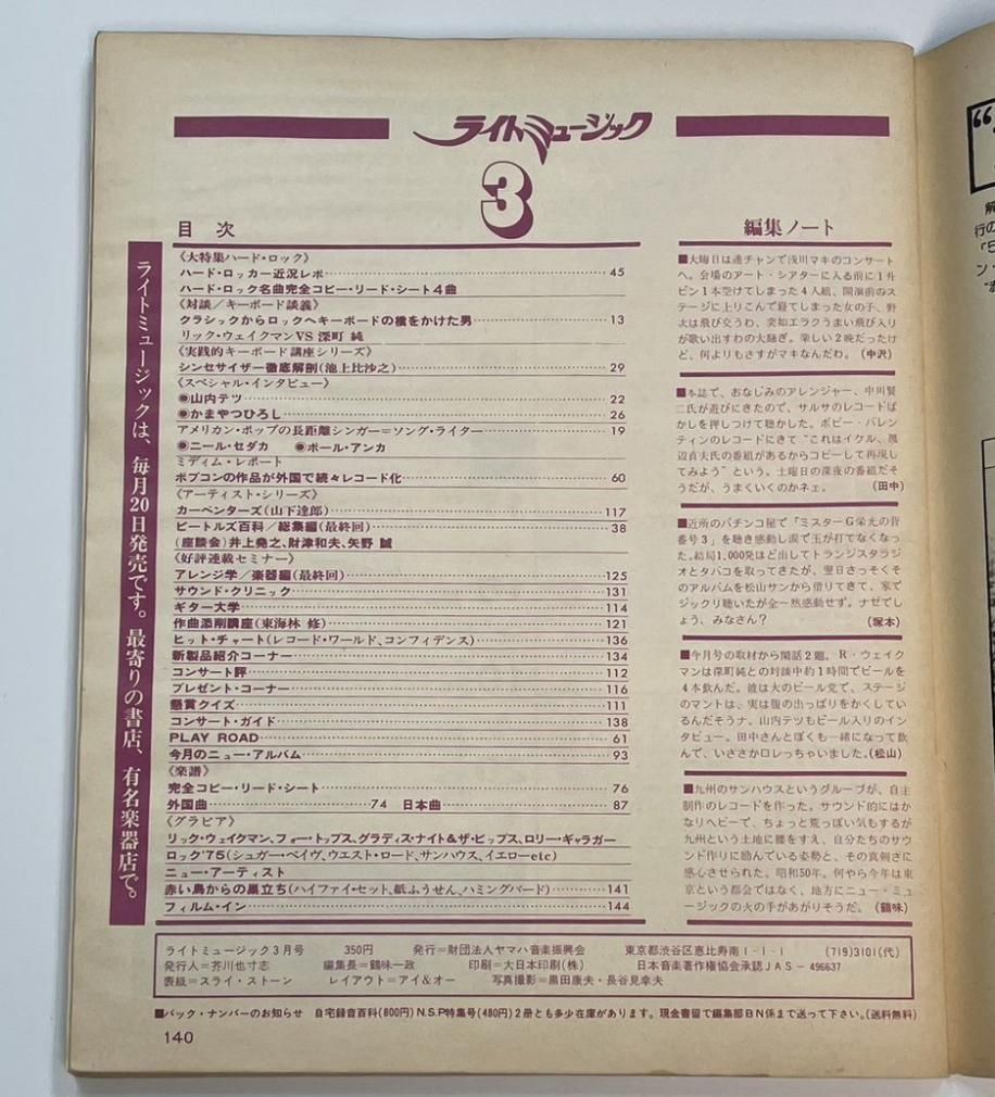 ライトミュージック 1975年3月 山内テツ かまやつひろし 財津和夫 レッドツェッペリン