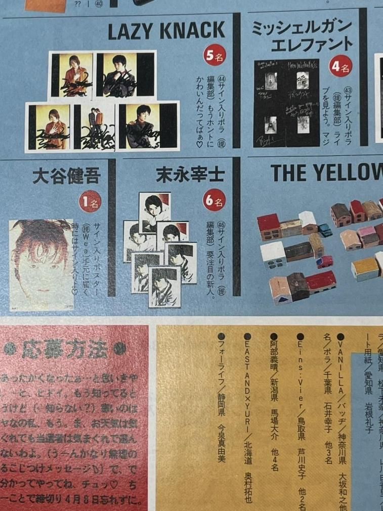 ミッシェルガンエレファント アベフトシ 直筆サイン入り・ポラロイド写真 1996 当選書付 パチパチ1996.4抽選プレゼント