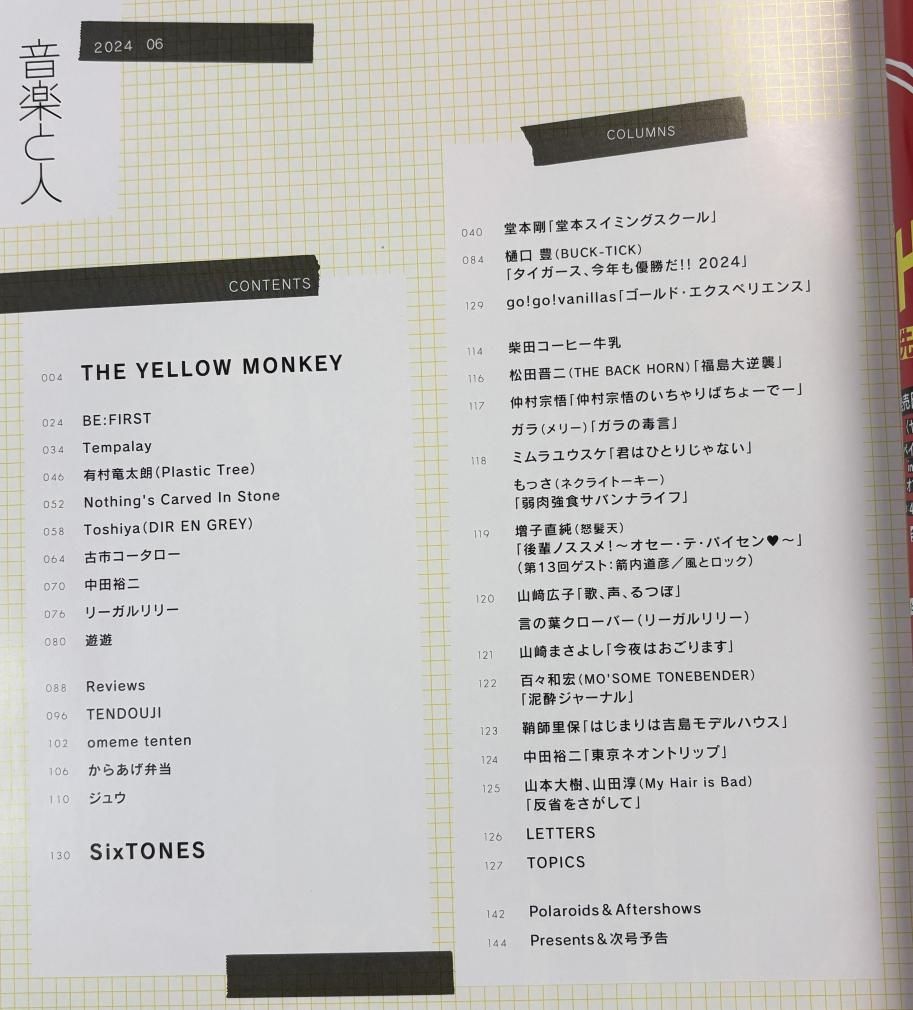 音楽と人 2024年6月 イエローモンキー / BE:FIRST 古市コータロー 樋口豊(BUCK-TICK)