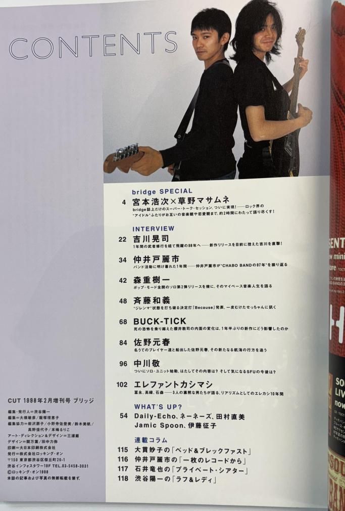 BRIDGE 18 1998年2月 宮本浩次×草野マサムネ 対談!19頁 / 佐野元春 BUCK-TICK エレファントカシマシ