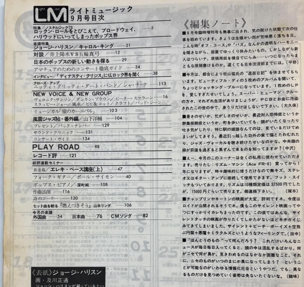 ライトミュージック 1973年9月 ジョージ・ハリスン キャロル・キング 井上陽水VS五輪真弓 チューリップ オフコース